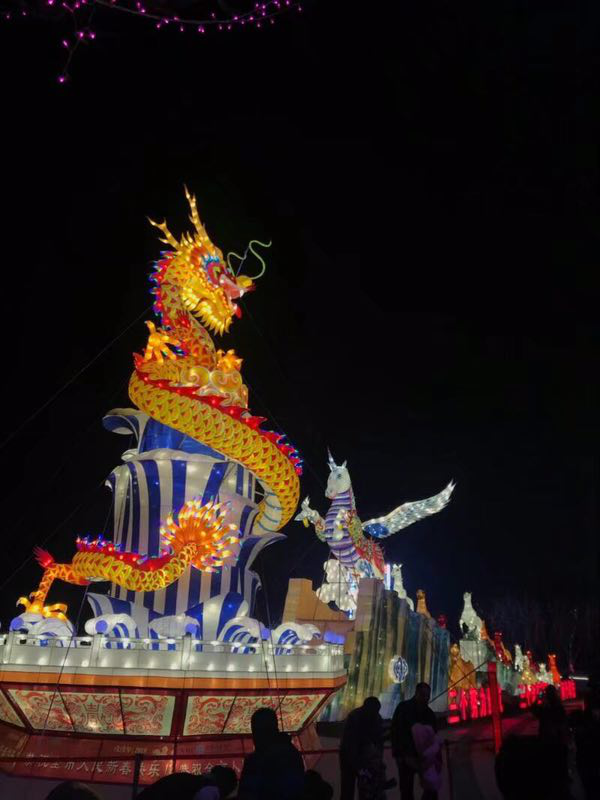 在丹凤朝阳广场还举办了极具民俗特色的综合性庙会活动,集观赏、娱乐、餐饮、购物、体验为一体,吃、玩、赏、乐、购的一站式体验。还能品尝到中华老字号美食和近百种全国各地的特色美食。庙会还设非遗产品及游乐设施区,包括吹糖人、皮影戏、捏泥人等传统工艺及手工艺品,使我近距离感受到了非物质文化遗产的魅力,同时还设有幸运金蛋等数十种耳熟能详的小游戏。还有民俗艺术团进行舞龙舞狮、锣鼓、秧歌、铜人等民俗表演。各种活动使我感受到了过年的热闹气氛,也更多地了解到了民间技艺和民俗风情。