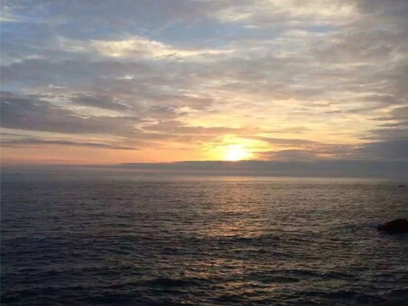 晚上,吃了一碗热气腾腾新鲜又美味的海鲜面,便早早的去民宿休息了。第二天早上,没有定闹钟,早上迷迷糊糊的醒了,心里想肯定要错过日出了,摸出手机一看,5:06,我跳起来拉开窗帘,放眼望去,天际刚刚有一点点光透出来,远处岸边的岩石上稀稀拉拉的站着几个看日出的人。来不及洗脸刷牙,在岩石的楼梯上开始往日出观景台奔跑,刚好赶上了最美的日出!