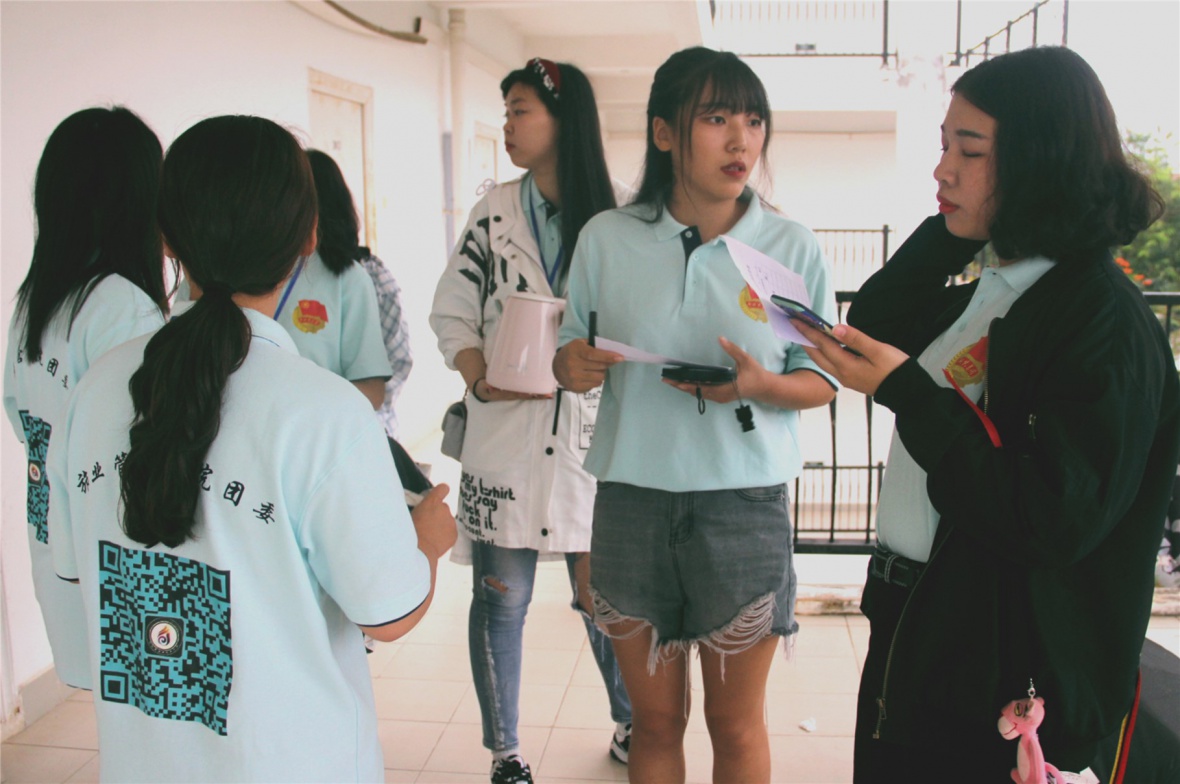 查寝工作以和组织的部门为单位小组,由负责人带领进行区域化查寝。此时飘起的毛毛细雨,夹带着几丝凉意,虽为查寝增添了不少困难,但是丝毫没有影响查寝的质量,仍不失礼貌。轻轻地敲一下门,一句“同学你好,旅业团学组织查寝,方便开一下门吗?”拉近了距离,为旅业员工组织树立了良好形象。