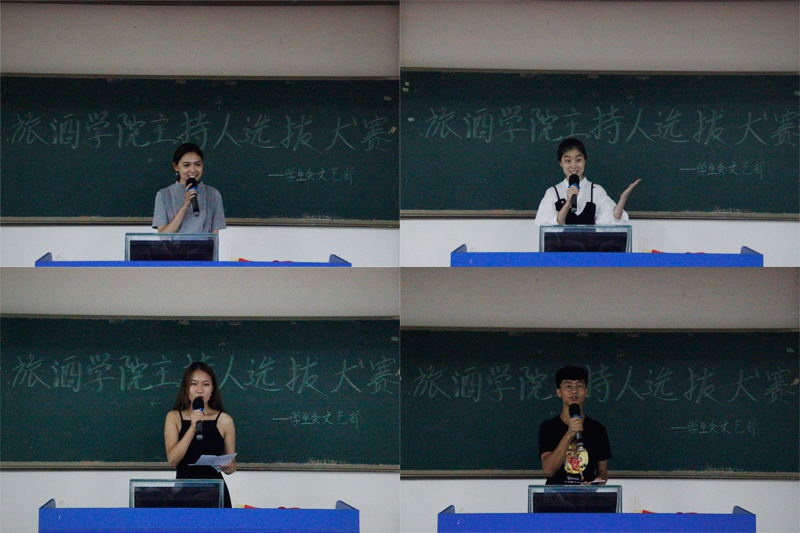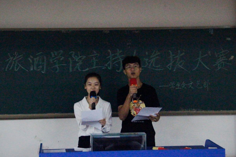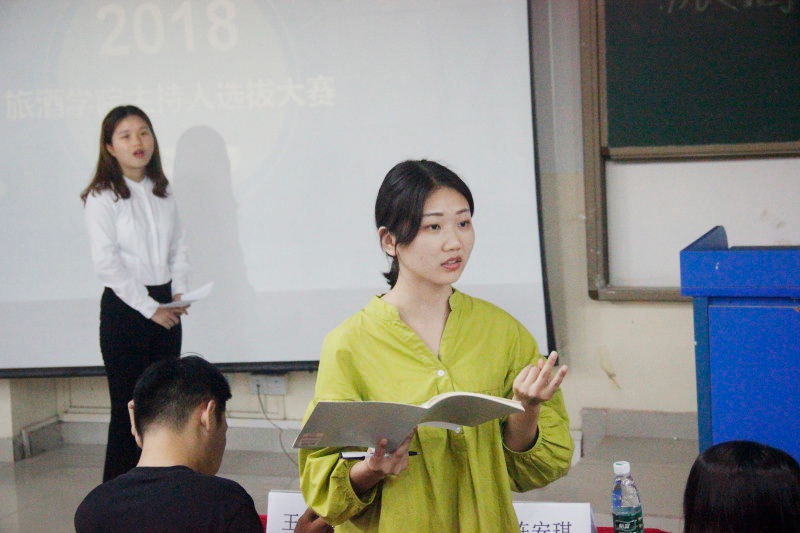 本次比赛分为两个环节,第一环节由自我介绍和朗诵主持稿组成,第二环节是顺口溜及模拟主持。