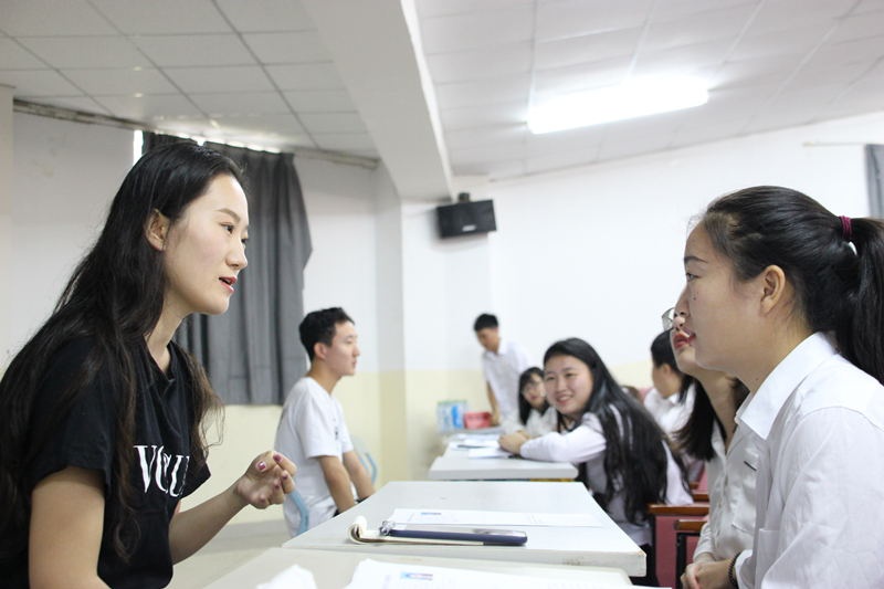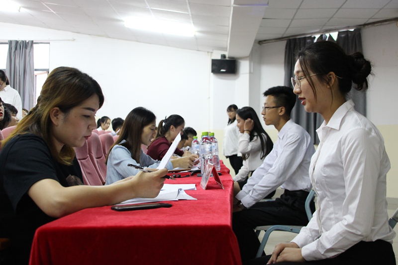 经过短暂的休息与准备,下午2时,复试也在书知楼1208教室开展,黎玉琴经理宣讲本次活动目的,并展示公司宣传片,要求员工具有较强的责任心。随后沈丹经理分别从活动主题、时间、地点等方面进行宣讲,进一步提出对志愿者的要求,提醒员工在执行任务时要保护自己人身及财产安全。更强调以员工的英语口语能力、执行能力、自身体力、精神风貌等方面作为面试条件。