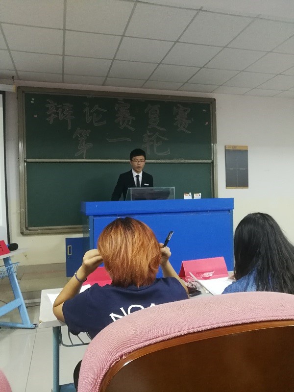 辩论赛分为初试和复试两个阶段,经过初试后,脱颖而出16位同学,分成了4组,分别由4位队长带领,比赛形式也由个人演讲转变为团体竞赛。