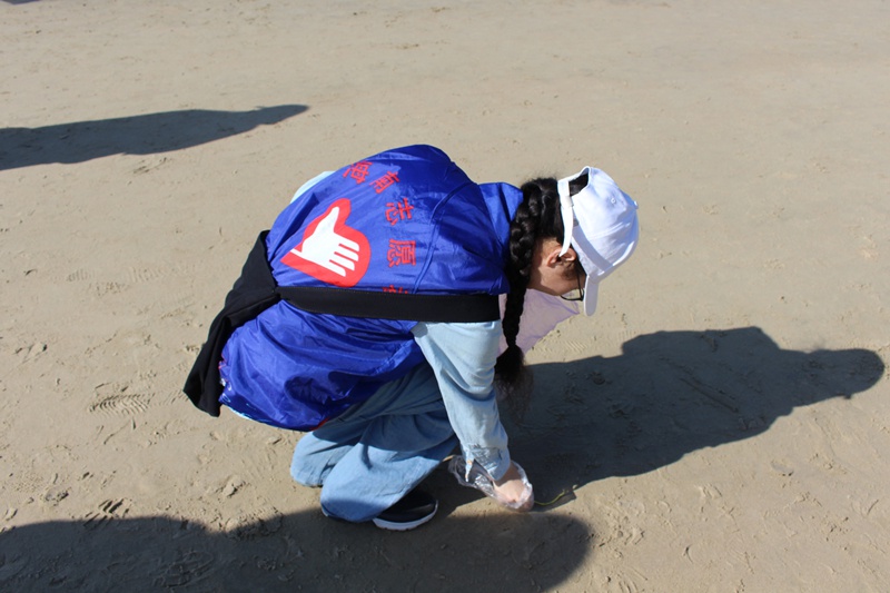 志愿者们抵达三亚湾后根据安排两两分组,沿着沙滩边缘进行垃圾的搜寻、分拣工作,搜寻到的垃圾多混于沙砾之中,种类有食物残渣、玻璃碎片、烟头以及塑料包装等,数量令人触目惊心。
