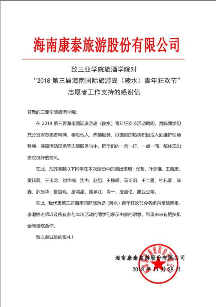 11月28日,公司于书知楼1208教室举行了第三届陵水青年狂欢节表彰大会,出席此次大会的有思想导师李湘婷、团委秘书长冯文文、获奖人员以及青协各部长和干事。