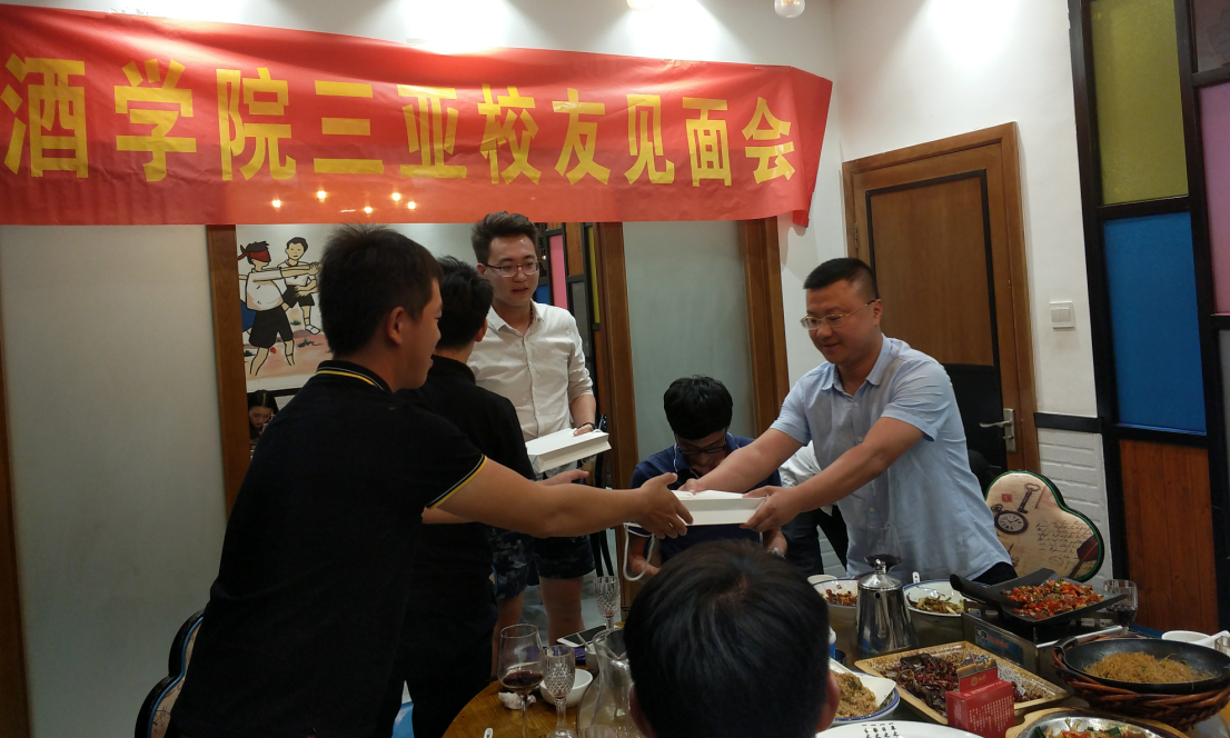 见面会聚餐中,15名员工代表来自12届至18届,大家互相认识,并建立了微信联络群。临近结束,党总支副书记王翔代表公司向参加见面会的员工送上公司精心准备的礼物,印有公司名称的笔记本,祝愿各位员工工作事业发展顺利。