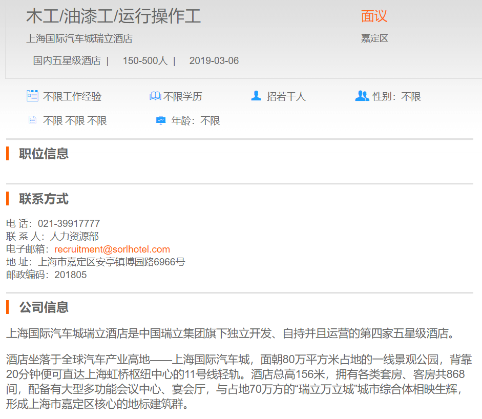 上海国际汽车城瑞立酒店木工