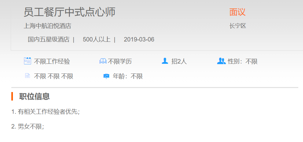 上海中航泊悦酒店员工餐厅中式点心师
