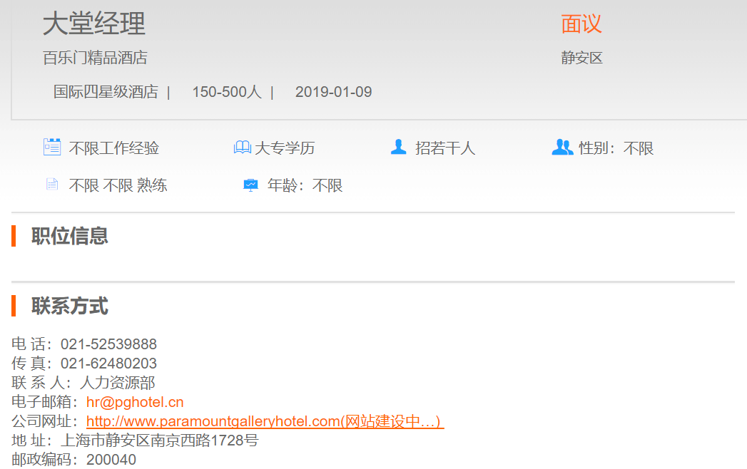 百乐门精品酒店大堂经理