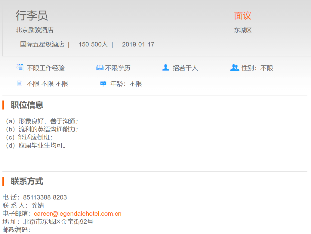 北京励骏酒店行李员