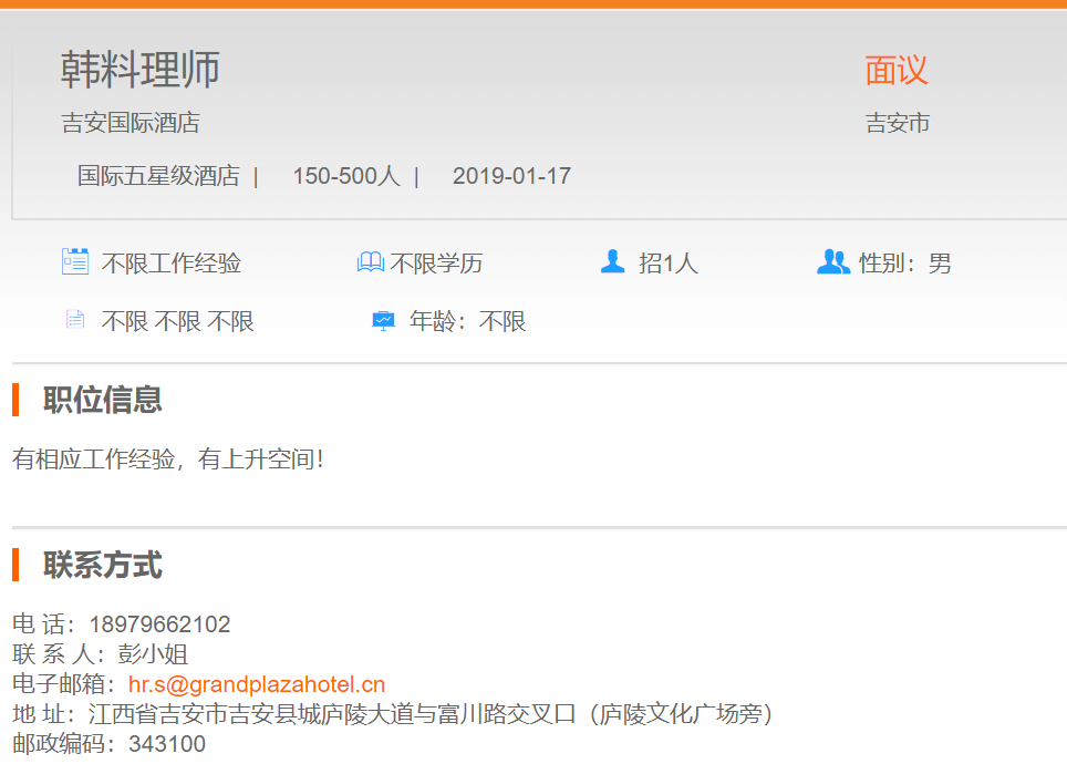 吉安国际酒店韩料理师