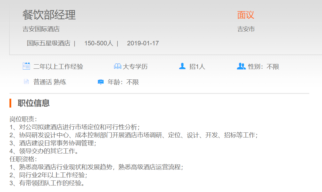 吉安国际酒店餐饮部经理