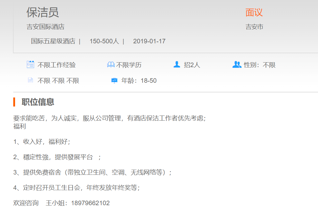 吉安国际酒店保洁员