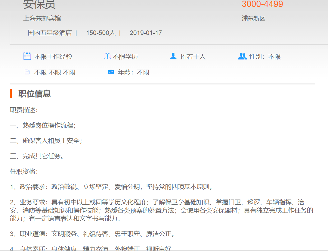 上海东郊宾馆安保员