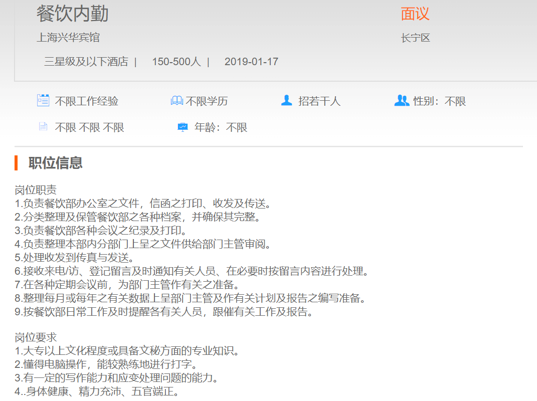 上海兴华宾馆餐饮内勤