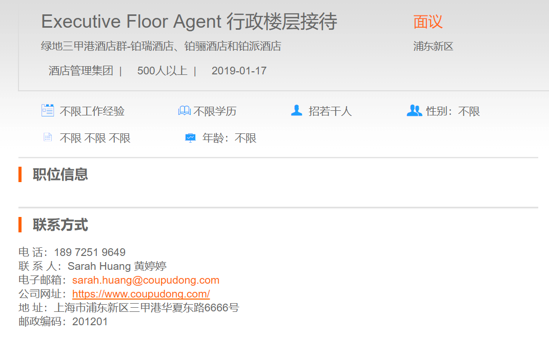 绿地三甲港酒店群行政楼层接待员