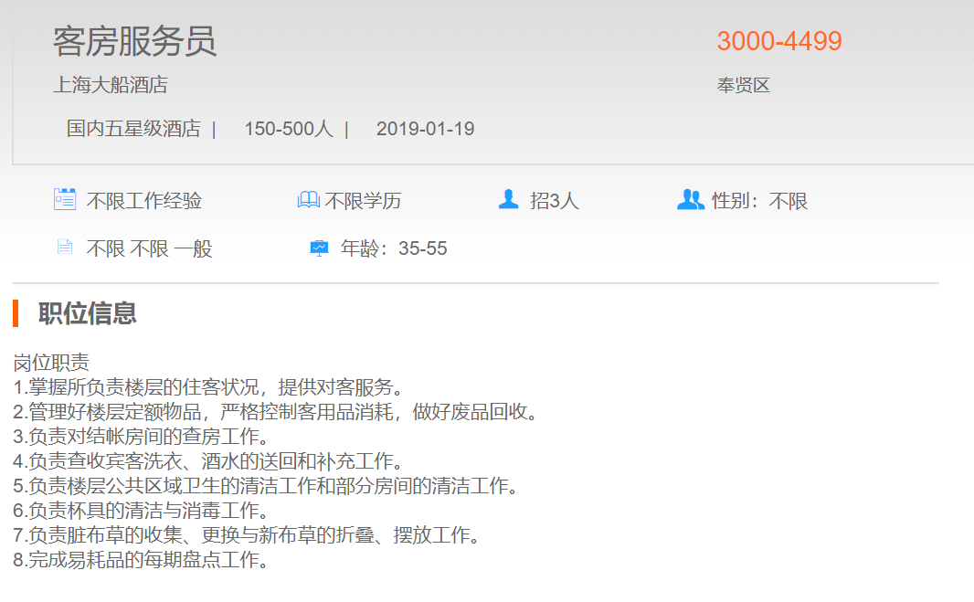 上海大船酒店客房服务员