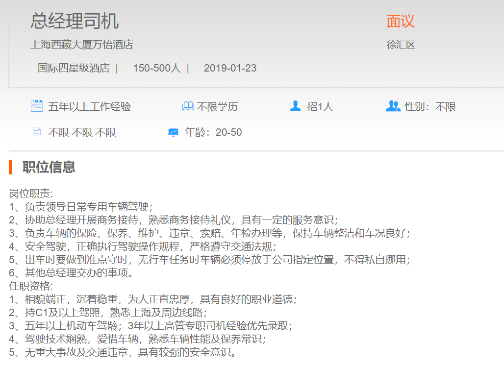 上海西藏大厦万怡酒店总经理司机