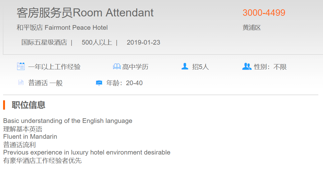 和平饭店客房服务员
