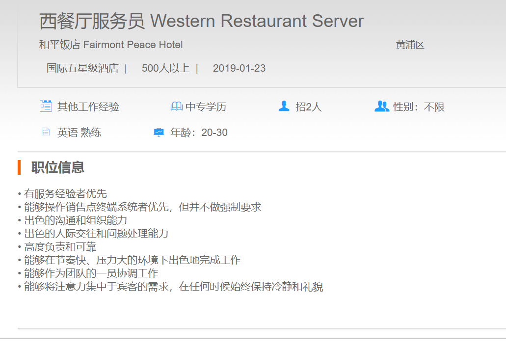 和平饭店西餐厅服务员