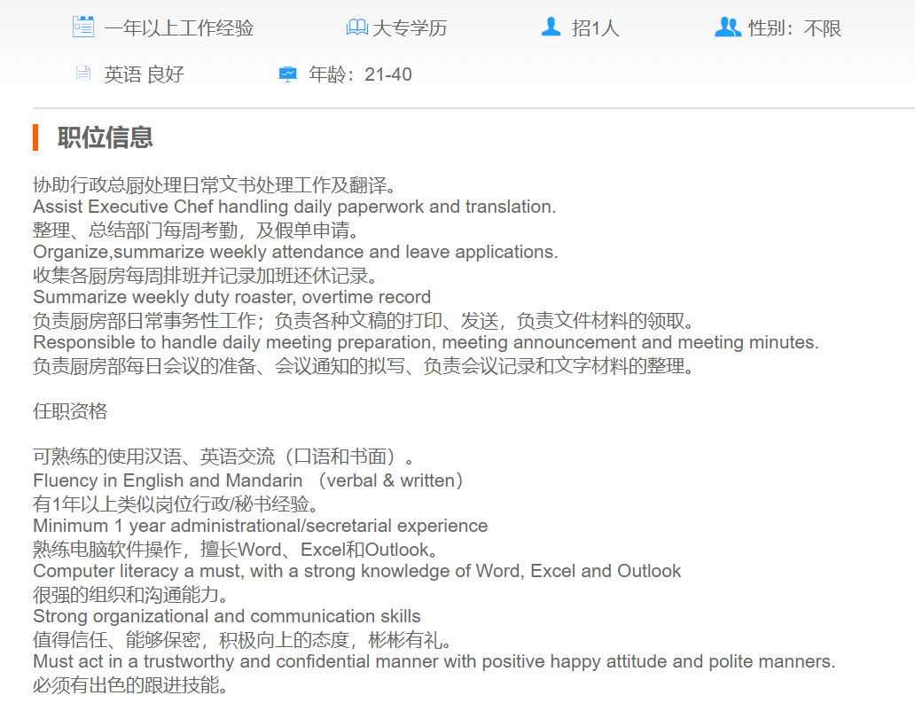 和平饭店行政助理