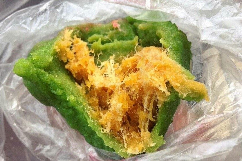 沈大成的青团,蛋黄肉松的内馅,蛋黄的颜色就让人食指大动,金灿灿的蛋黄配上肉松,再加上软糯的青团皮,一口咬下去艾青的香味弥漫口中,回味悠长。