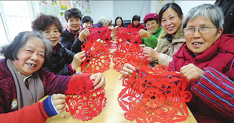 来到大街上,也是幸福、祥和的气氛。老人们聚在一起,有的在剪窗花,他剪得那么精致,那么精美,有的在画门神,画得栩栩如生,有的在写春联,写得那么漂亮、整洁。那们显得那么幸福、安祥。还有一此清闲的人也聚在一块拉拉家常,说说闲话。有的人早早的就准备好了,在那贴福字和春联。