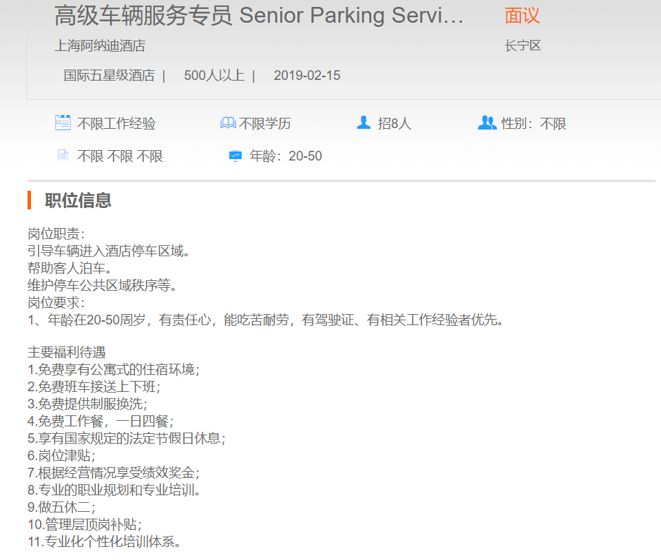 上海阿纳迪酒店高级车辆服务专员