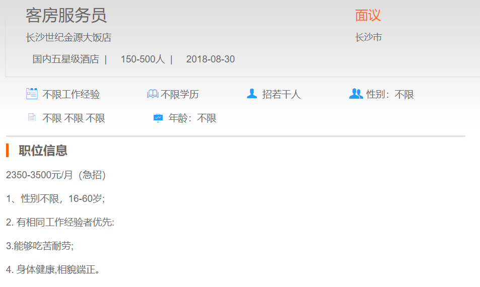 长沙世纪金源大饭店客房服务员