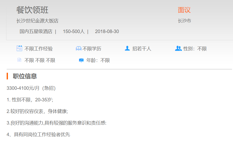 长沙世纪金源大饭店餐饮领班