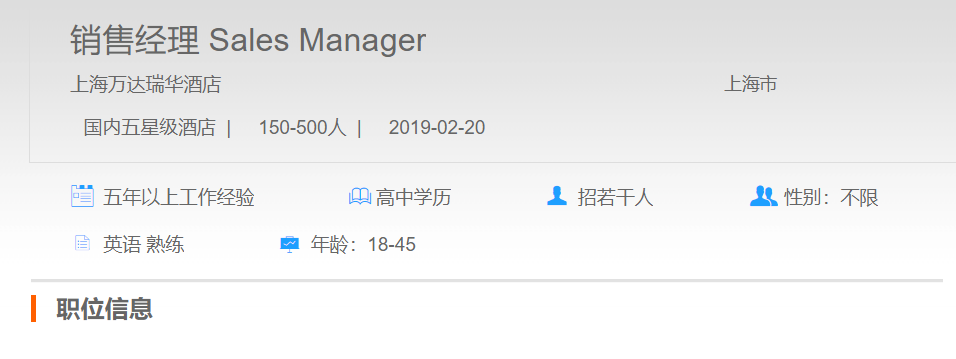 上海万达瑞华酒店销售经理