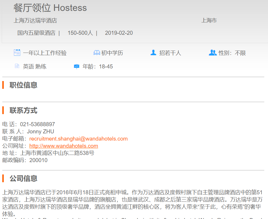 上海万达瑞华酒店餐厅领位