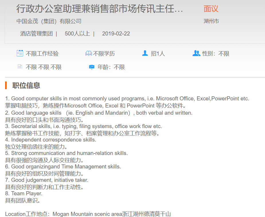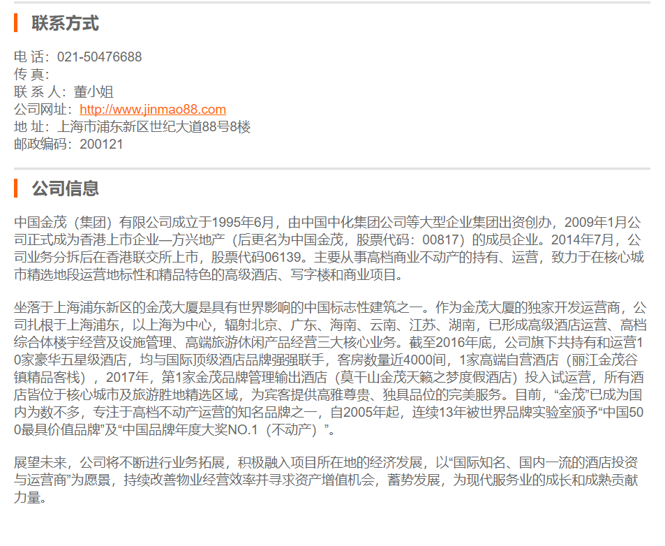 中国金茂有限公司行政办公室助理兼销售部市场传讯主任