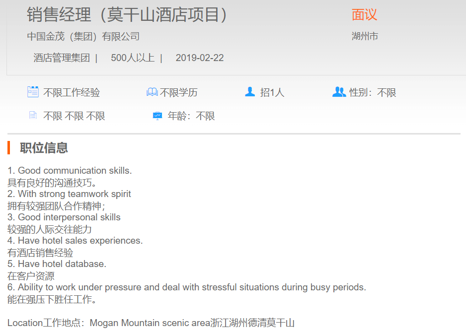 中国金茂有限公司销售经理