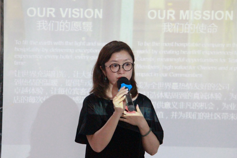 大中华南区负责人陆荃向员工介绍希尔顿集团