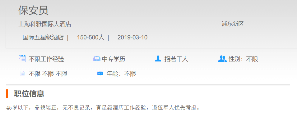 上海科雅国际大酒店保安员