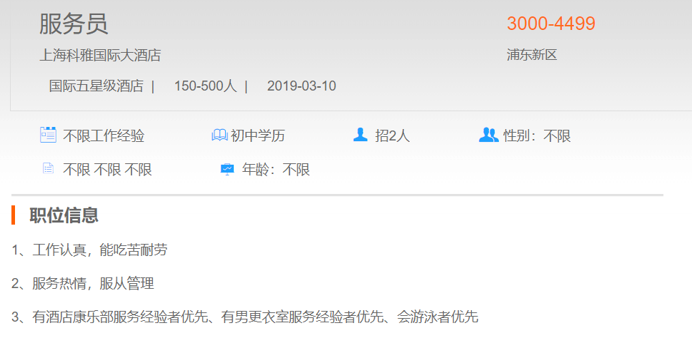 上海科雅国际大酒店服务员