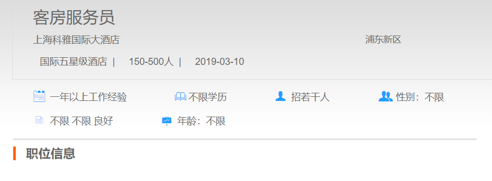 上海科雅国际大酒店客房服务员