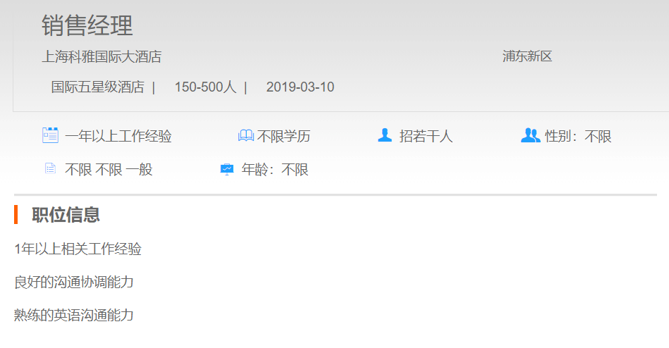 上海科雅国际大酒店销售经理
