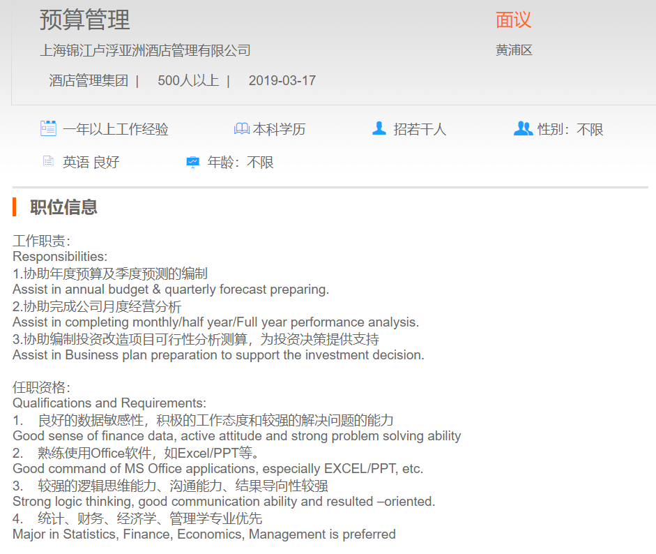 上海锦江卢浮亚洲酒店管理有限公司预算管理