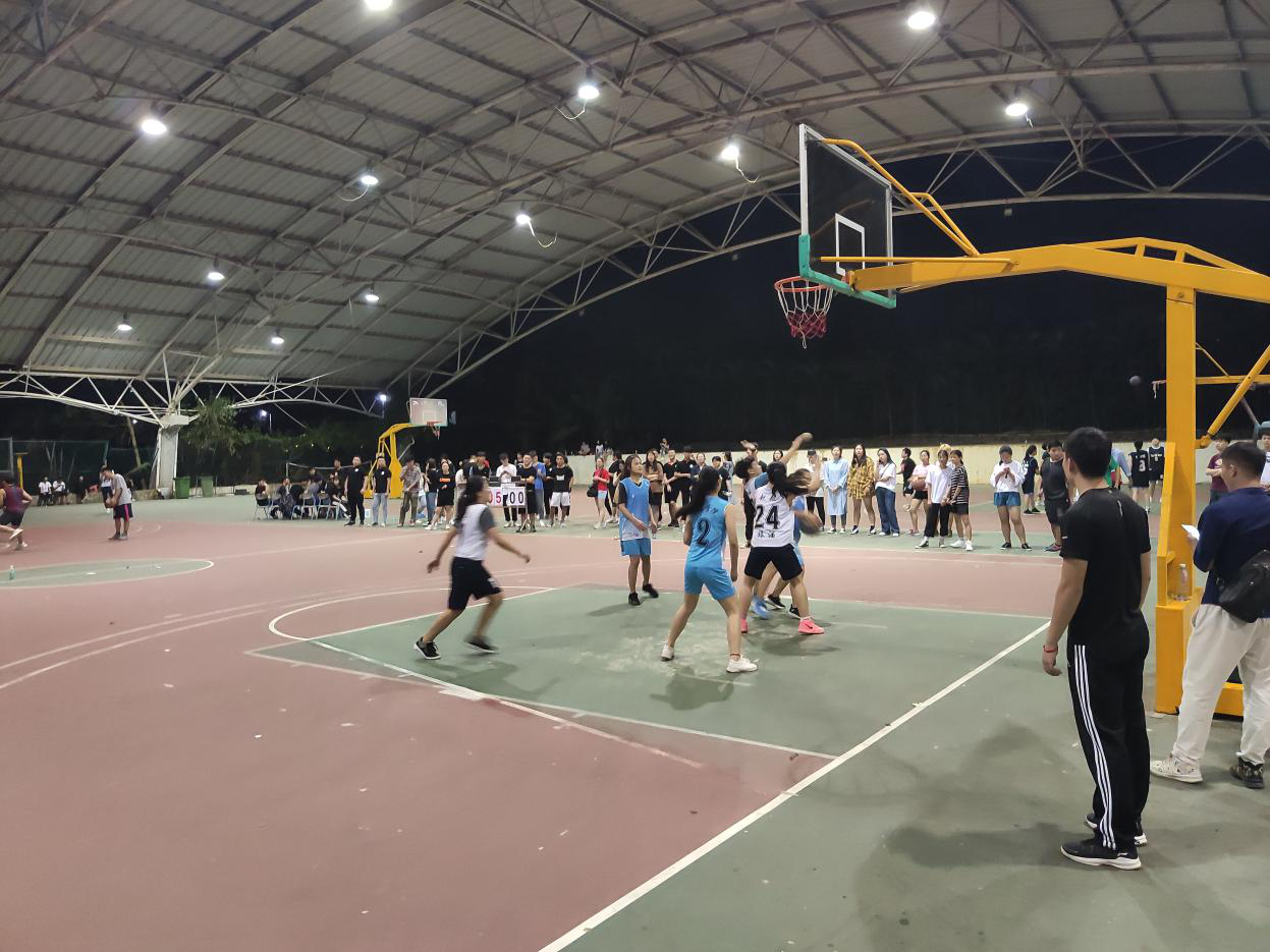3月23日晚7时,公司参与的男、女子篮球比赛于风雨球场正式开始,旅游1802班和旅游1803班部分员工到场观看比赛。