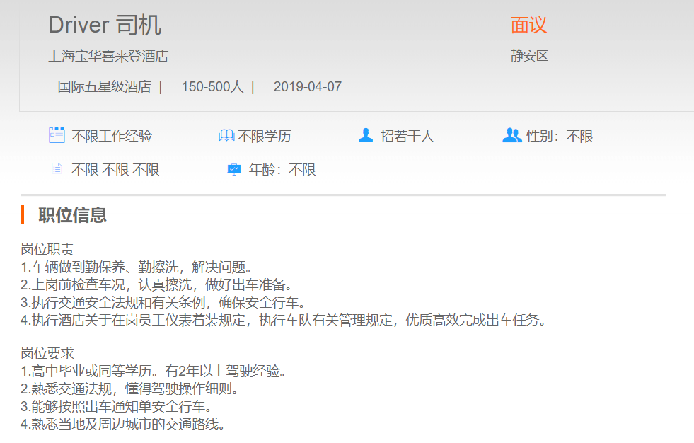 上海宝华喜来登酒店司机