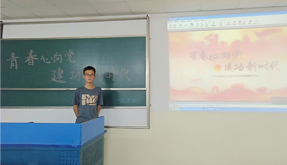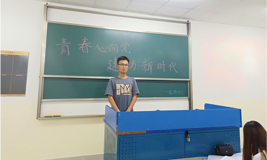 4月9日晚自习于书知楼1208教室,在团支书陈鑫的主持下旅游1803班召开了以“青春心向党,建工新时代”为主题的团课宣讲班会。
