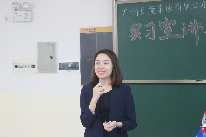 接着,酒店集团总监陈璐讲述了自己刚加入长隆的相关经历,由大堂副理自愿申请到各部门进行工作,最后在调回大堂副理这个职位,此时的她已经了解了相关工作,面对客人的投诉等问题解决起来游刃有余。之后,她提到长隆可以提供延长实习期、跨酒店学习,能为实习生们提供一个更好的机会。