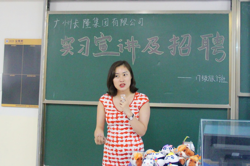 4月17日下午2时,广州长隆旅游集团招聘宣讲于公司书知楼2101教室展开,由广州区酒店集团总监陈璐、广州区酒店经理陈炜杰及人力资源部经理易晶晶进行宣讲,公司旅行社专业及部分邮轮专业的员工持简历参加此次招聘宣讲。