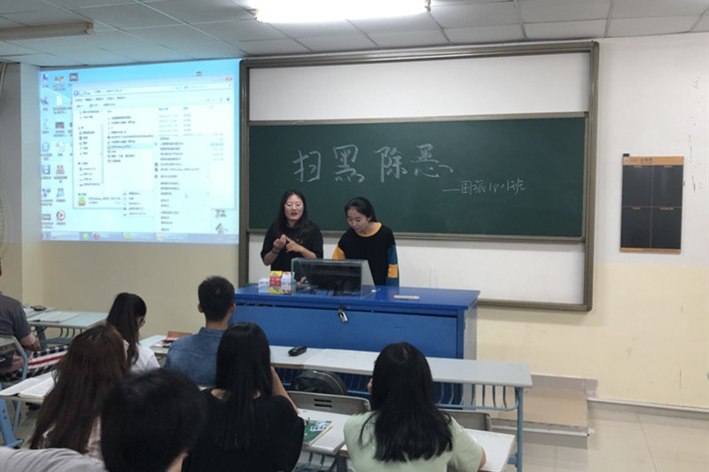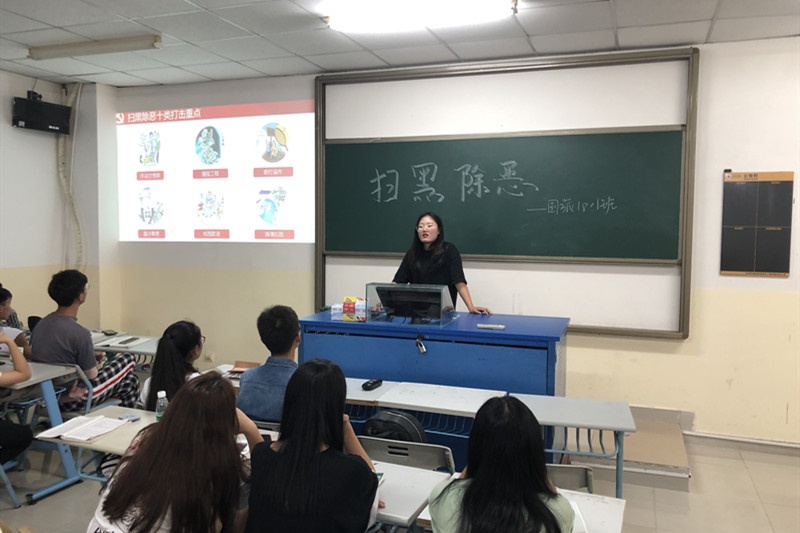 2019年4月11日,在思想导师程璐的带领下,秉承着让同学们深入了解“扫黑除恶”的意义所在与重要性,我班于书知楼2207教室召开了“扫黑除恶”主题班会。程璐导师和全班同学按时出席了本次班会,班长王钱、杨鸾与组织委员曹群芳担任本次班会主讲人。