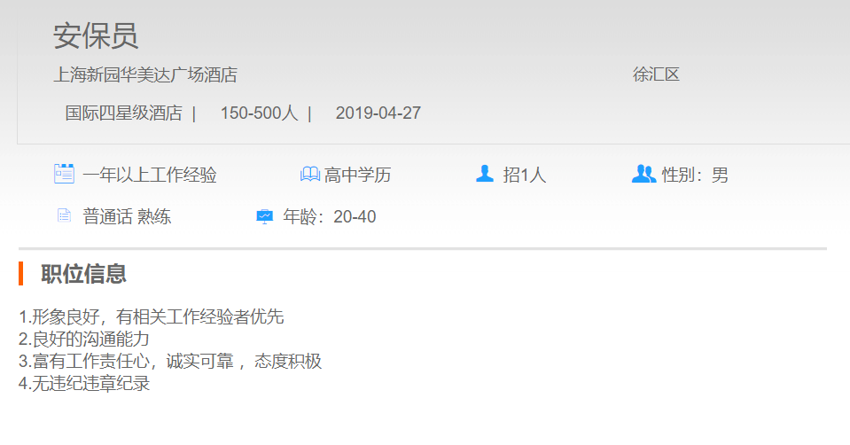 上海新园华美达广场酒店安保员