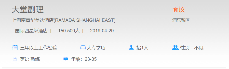上海南青华美达酒店大堂副理