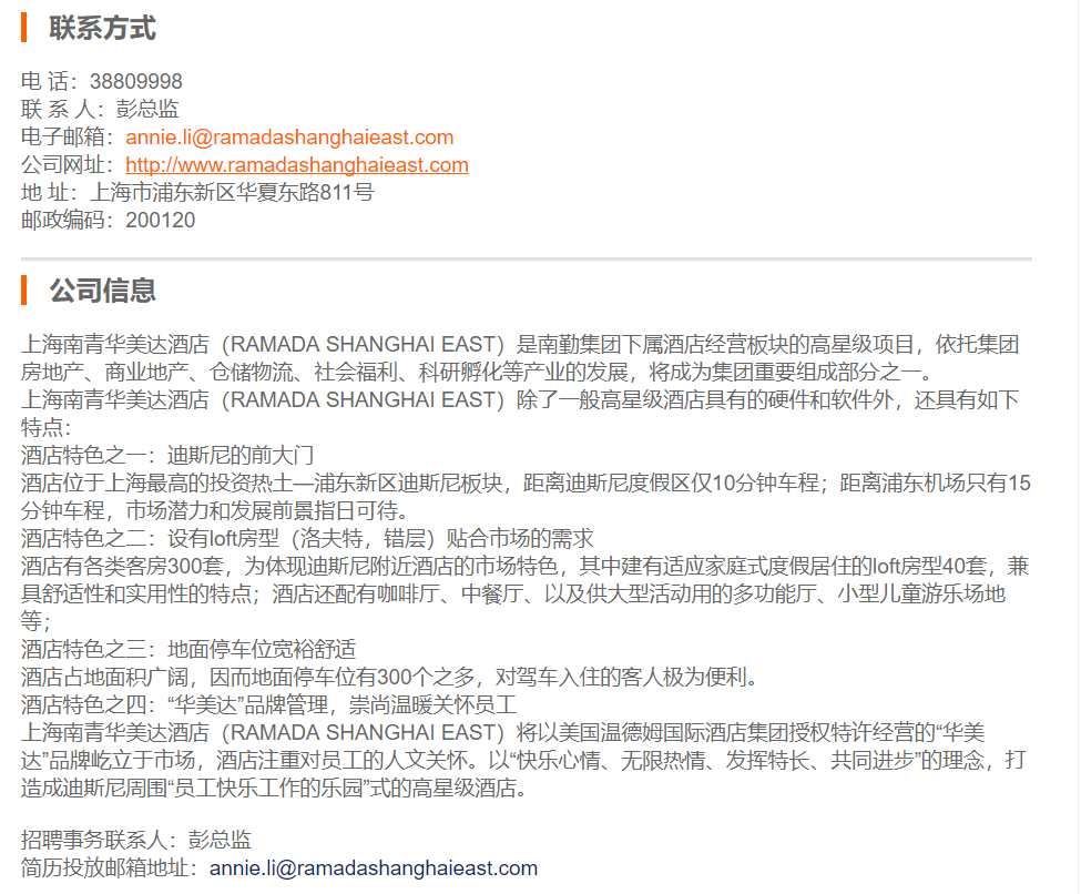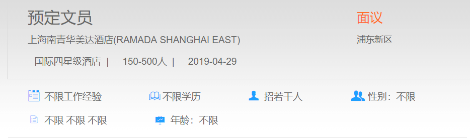 上海南青华美达酒店预定文员