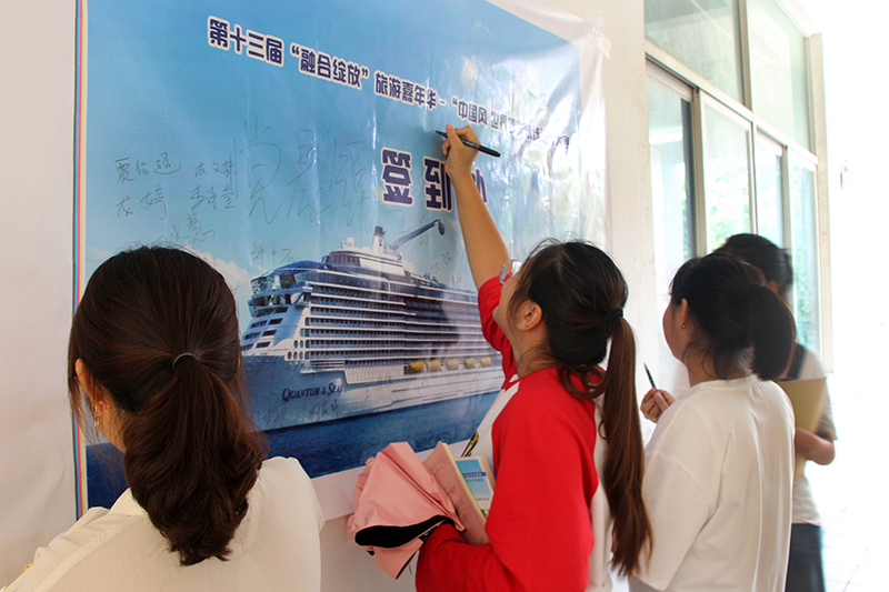 5月14日下午4时,金沙js5588第十三届“融合绽放”旅游嘉年华——“中国风,世界梦”航线设计大赛在书知楼1208正式开幕,邮轮专业负责人余有勇老师及专业教师张颖超、杨樨、冯超等出席了本次活动并担任评委,公司邮轮专业16、17级员工共组建了4支队伍参与本次赛事的角逐。
