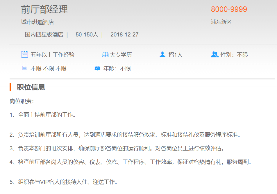 城市琪遇酒店前台部经理